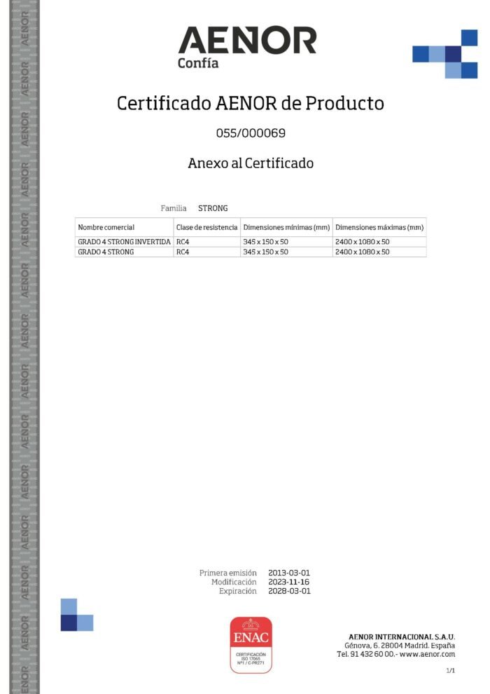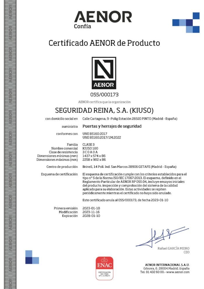 Certificado de producto de RC3 o RC4 por AENOR según la norma UNE EN 1627:2.021 o UNE 85160:2.013