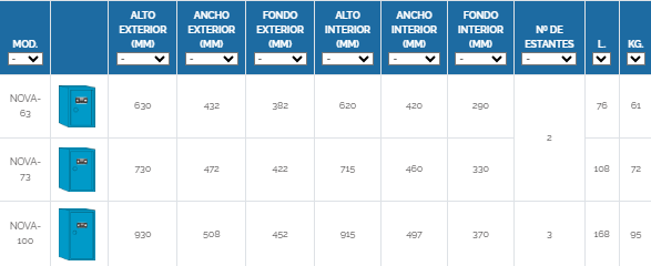 | NOVA-100 | SOBREPONER | CERRADURA DE LLAVE + TECLADO ELECTRÓNICO | NO | NO | 930x508x452 mm 168 Ltr 95 KG |