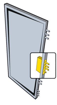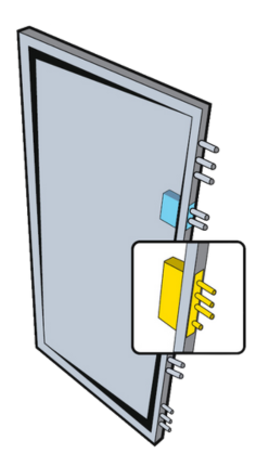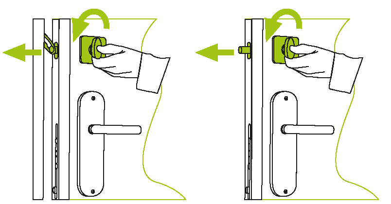 La puerta 415 presenta los mismos elementos de construcción que el modelo 402 respectivamente con el plus del sistema protector familia. Los dos cilindros de las puertas con protector familiar se abren con la misma llave.
