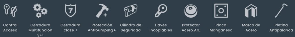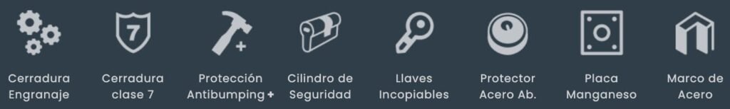 - Cerradura con grado máximo de seguridad y resistencia al taladro según UNE-EN 12209:2003 con sistema antirretroceso de cerrojos
