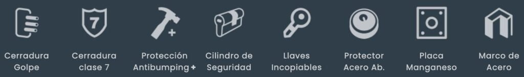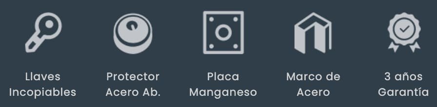 - Chapa de manganeso antitaladro 2 mm en cerradura.