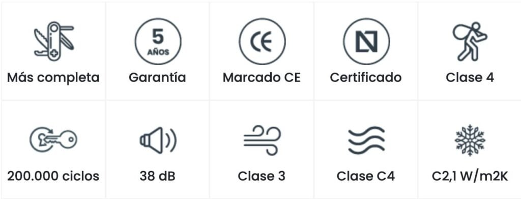 - Garantía: 3 años + 2 años adicionales (solo sistema de cierre sin cilindro)