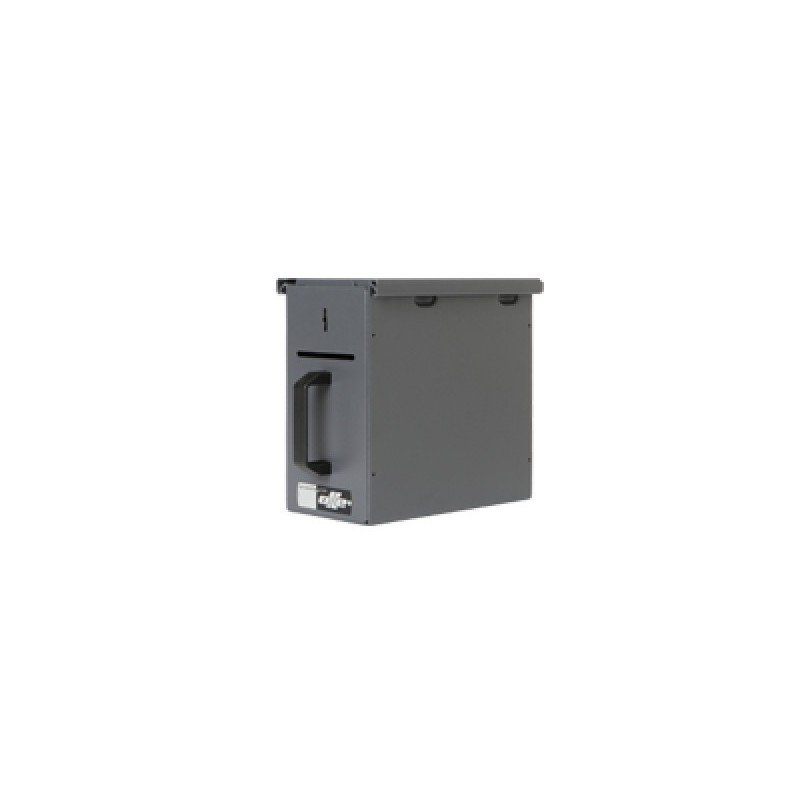 Eficaz sistema para proteger el efectivo en un punto de cobro y transportarlo. Se trata de un anclaje metálico preparado para fijarlo debajo de un mostrador, en un vehículo o al lado de una caja registradora. Una vez la caja está llena de efectivo, con una llave se desbloquea del anclaje y se traslada hasta el punto de recepción, donde con la otra llave se extrae el efectivo.