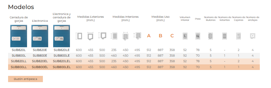 SUB800LEL | CERRADURA DE LLAVE + TECLADO ELECTRÓNICO | SI | NO | 600x455x500 mm 92 Ltr 70 KG | 1.112,00 € | |